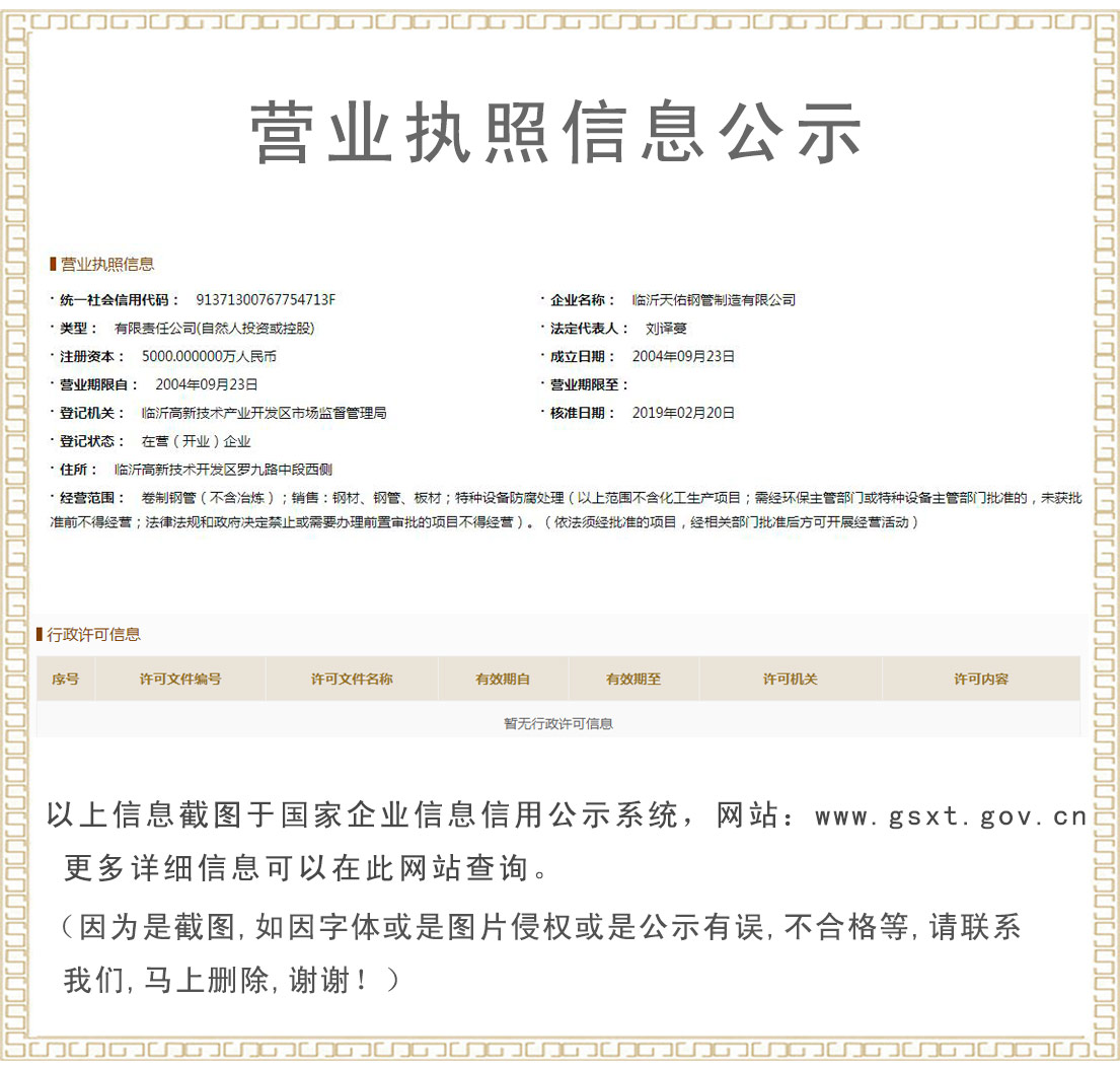 臨沂天佑鋼管制造有限公司,是專業生產雙面螺旋焊鋼管,螺旋鋼管的生產企業,公司具有生產設備和技術人才,已率先通過IS09001—2008國際體系認證。并取得中華人民共和國特種設備制造許可證(壓力管道)。公司以生產工藝合理,生產、檢驗設備先進,產品質量優良,規格齊全,價格合理,重合同,守信用而受到廣大客戶的贊譽。